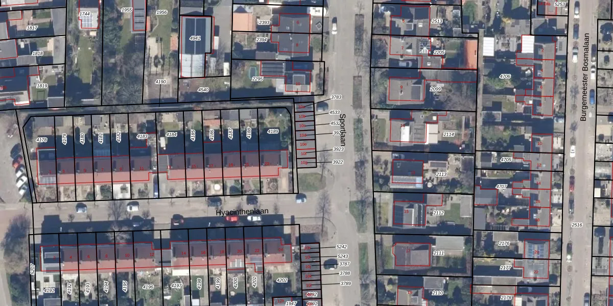 Gebruik de zoekbalk of klik op een perceel om informatie over het perceel te bekijken.