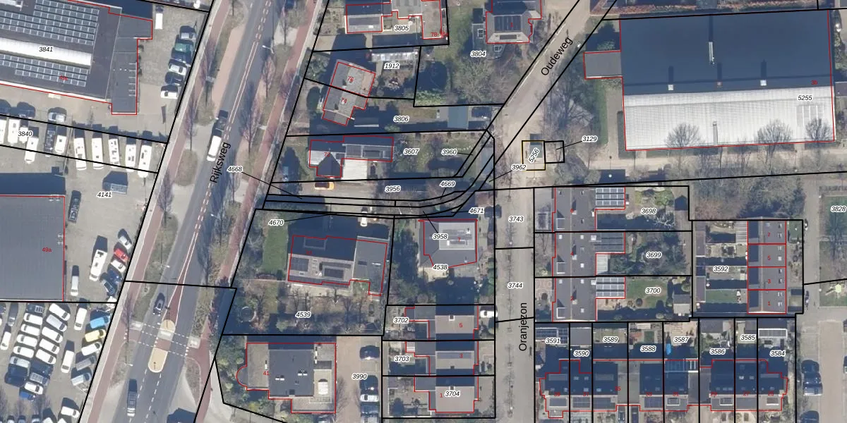 Gebruik de zoekbalk of klik op een perceel om informatie over het perceel te bekijken.