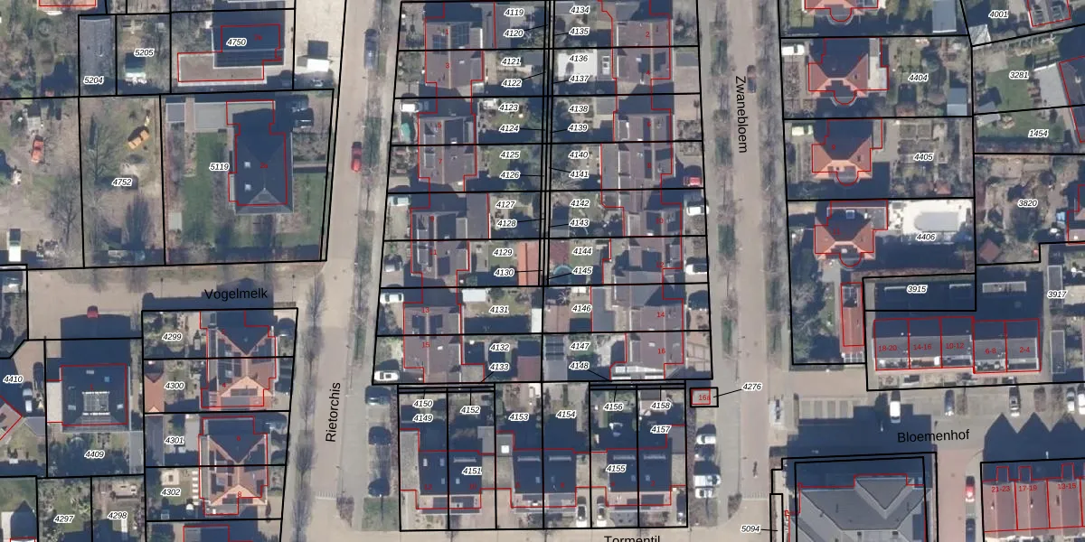 Gebruik de zoekbalk of klik op een perceel om informatie over het perceel te bekijken.