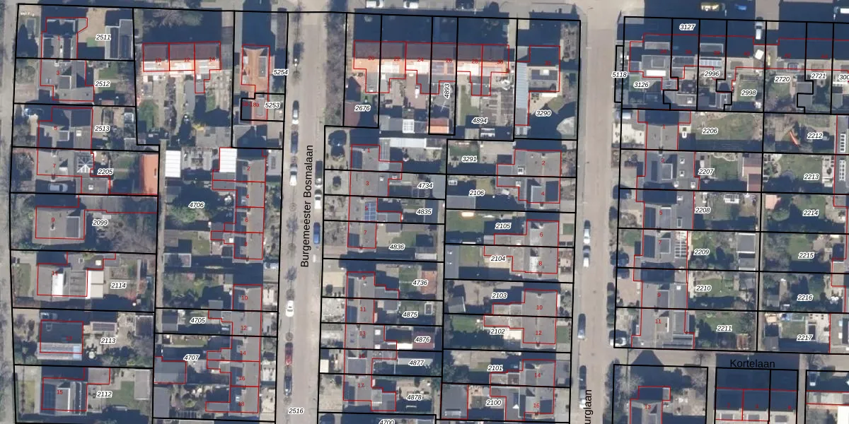 Gebruik de zoekbalk of klik op een perceel om informatie over het perceel te bekijken.