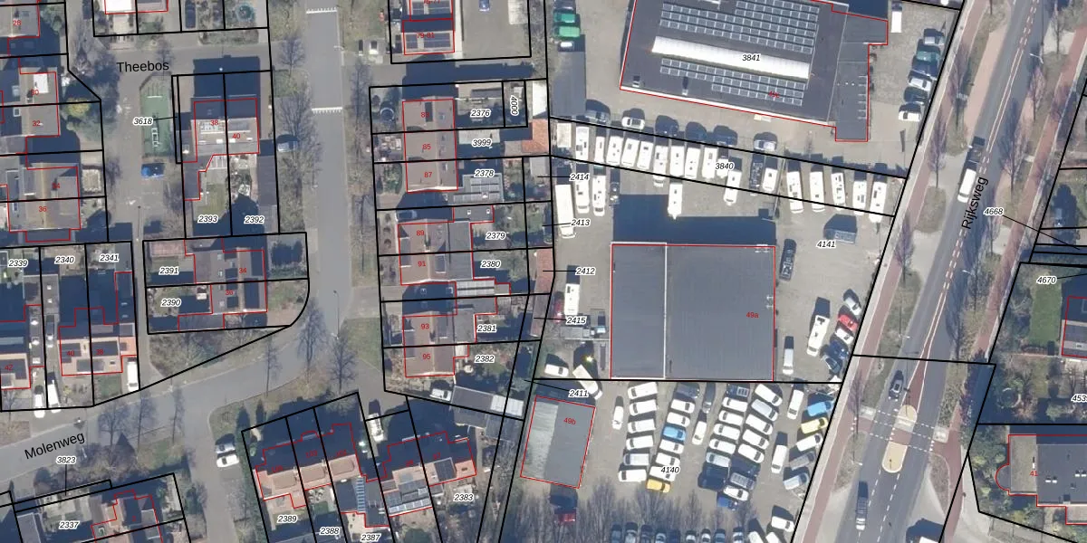 Gebruik de zoekbalk of klik op een perceel om informatie over het perceel te bekijken.