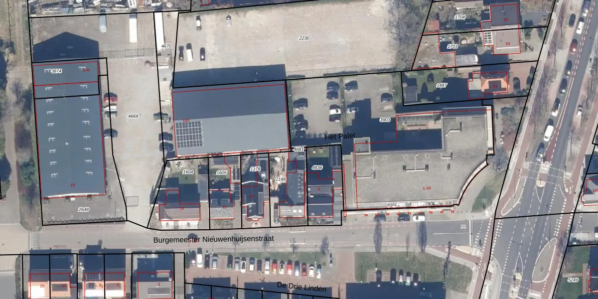 Gebruik de zoekbalk of klik op een perceel om informatie over het perceel te bekijken.
