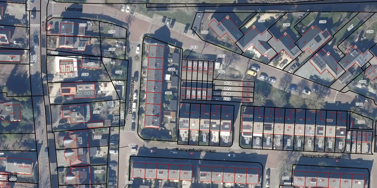 Gebruik de zoekbalk of klik op een perceel om informatie over het perceel te bekijken.