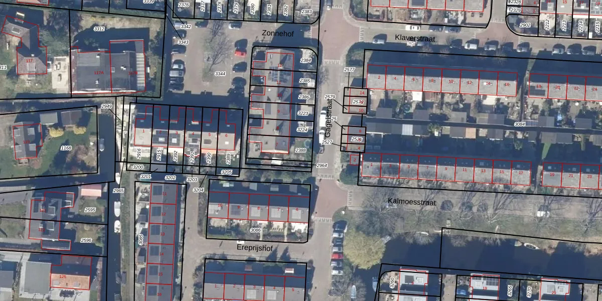 Gebruik de zoekbalk of klik op een perceel om informatie over het perceel te bekijken.