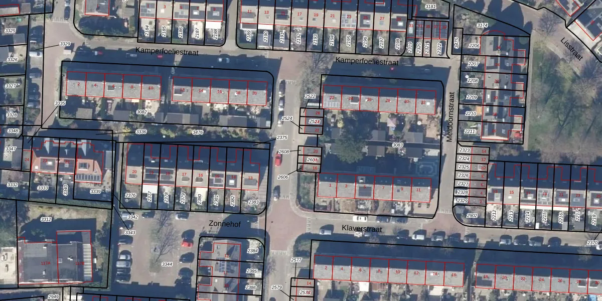 Gebruik de zoekbalk of klik op een perceel om informatie over het perceel te bekijken.