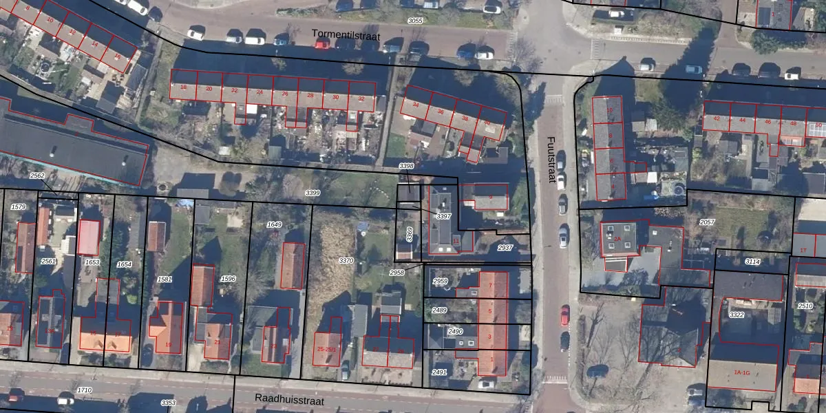 Gebruik de zoekbalk of klik op een perceel om informatie over het perceel te bekijken.