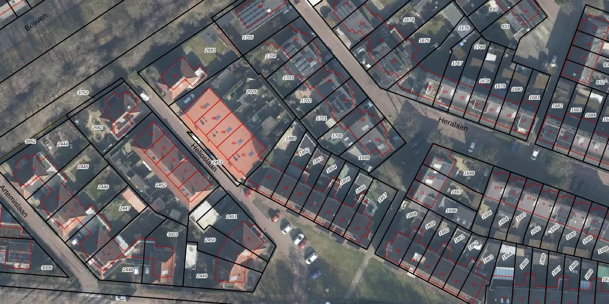 Gebruik de zoekbalk of klik op een perceel om informatie over het perceel te bekijken.