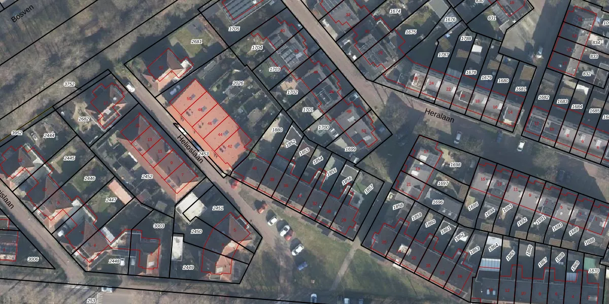 Gebruik de zoekbalk of klik op een perceel om informatie over het perceel te bekijken.