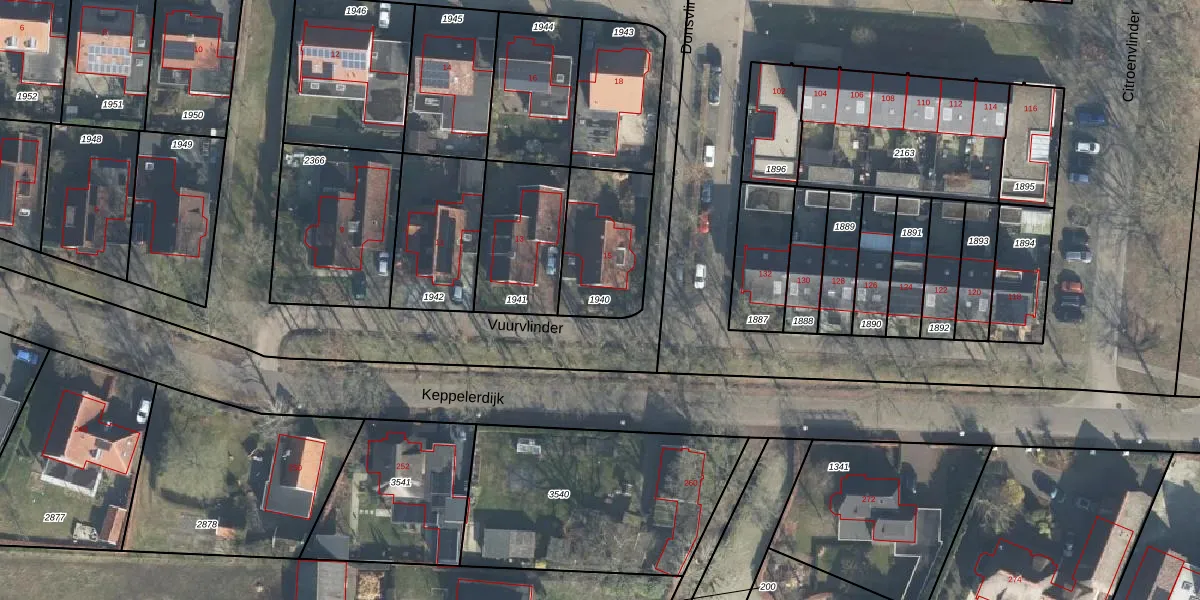 Gebruik de zoekbalk of klik op een perceel om informatie over het perceel te bekijken.