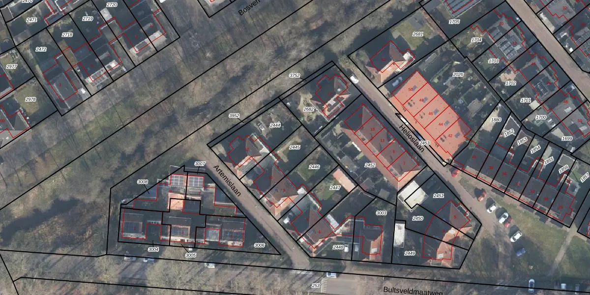 Gebruik de zoekbalk of klik op een perceel om informatie over het perceel te bekijken.
