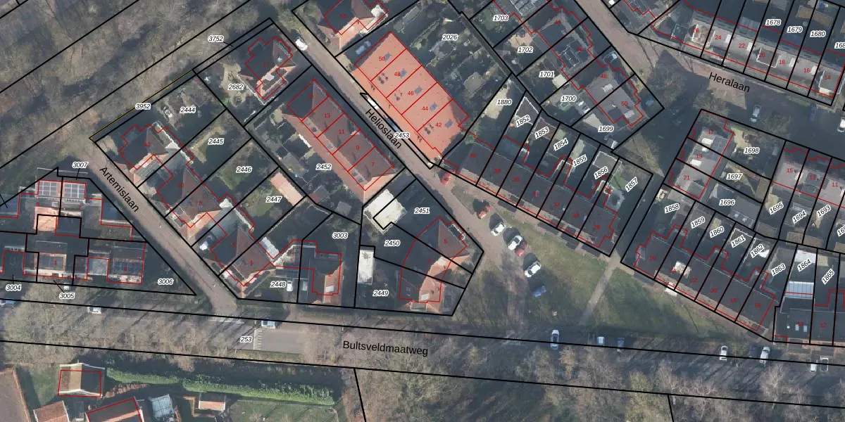 Gebruik de zoekbalk of klik op een perceel om informatie over het perceel te bekijken.