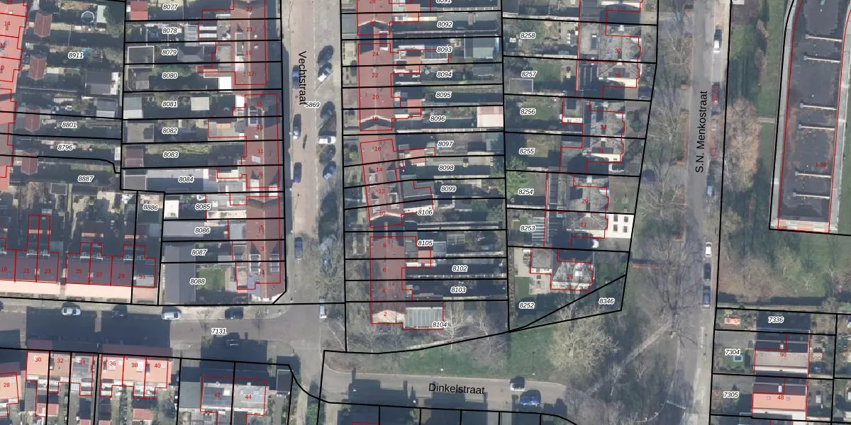 Gebruik de zoekbalk of klik op een perceel om informatie over het perceel te bekijken.