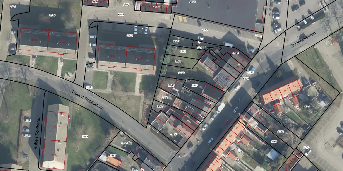 Gebruik de zoekbalk of klik op een perceel om informatie over het perceel te bekijken.