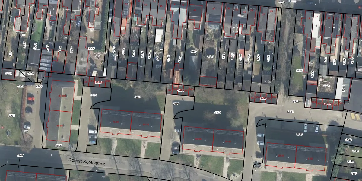 Gebruik de zoekbalk of klik op een perceel om informatie over het perceel te bekijken.