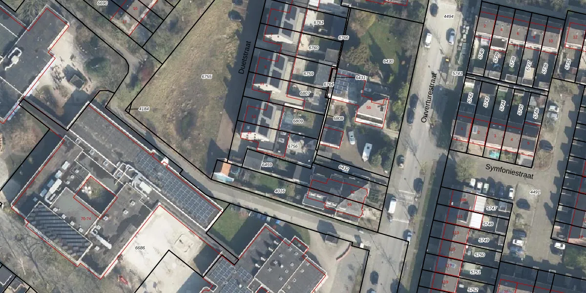 Gebruik de zoekbalk of klik op een perceel om informatie over het perceel te bekijken.