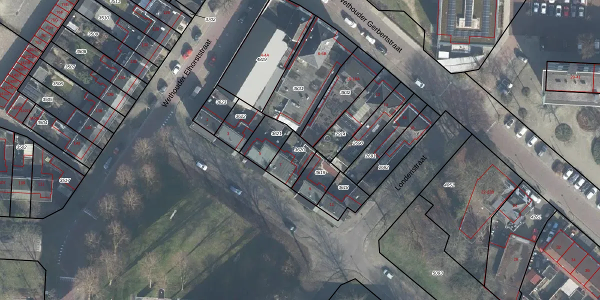 Gebruik de zoekbalk of klik op een perceel om informatie over het perceel te bekijken.