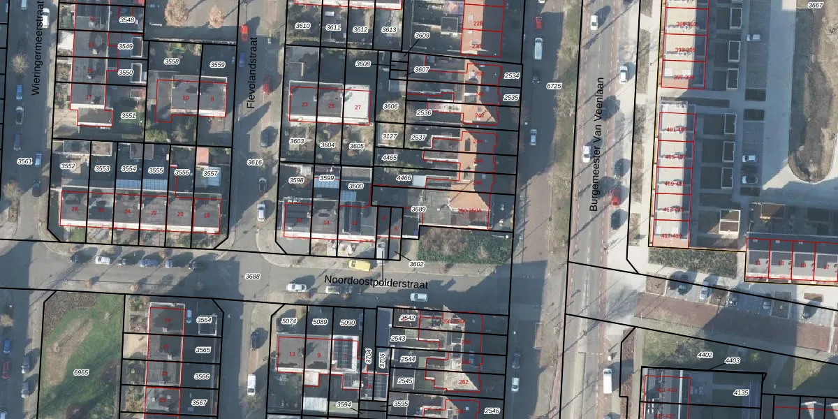 Gebruik de zoekbalk of klik op een perceel om informatie over het perceel te bekijken.