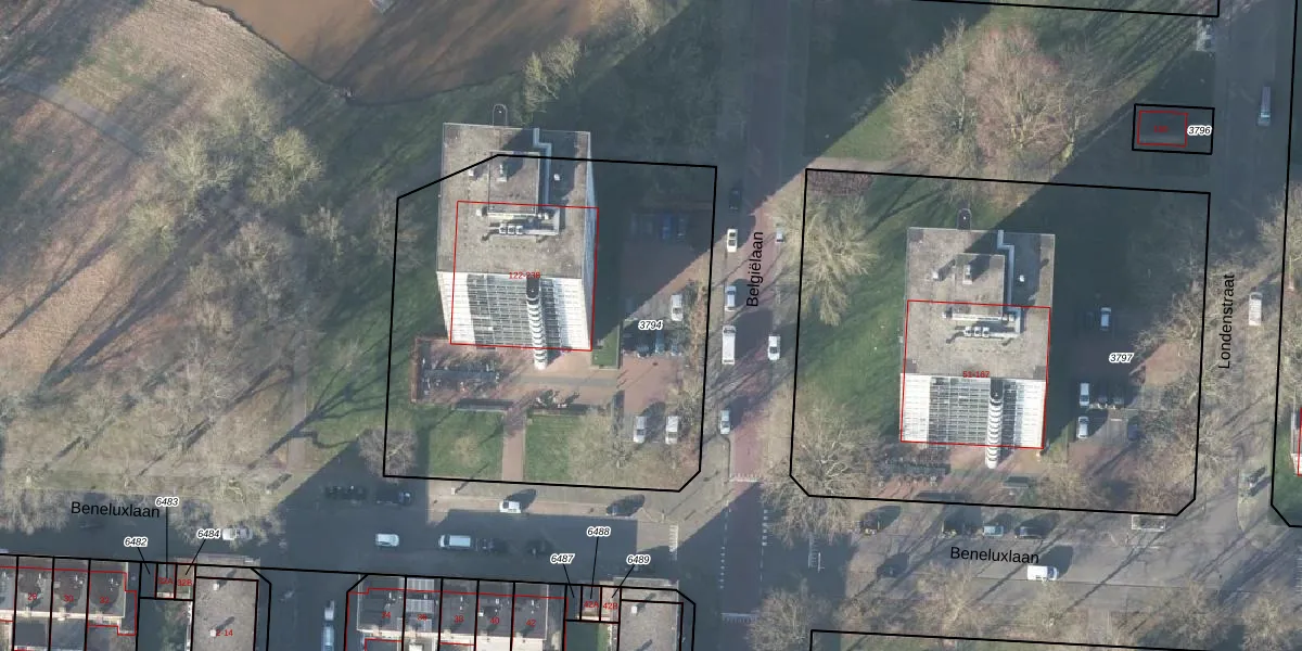 Gebruik de zoekbalk of klik op een perceel om informatie over het perceel te bekijken.