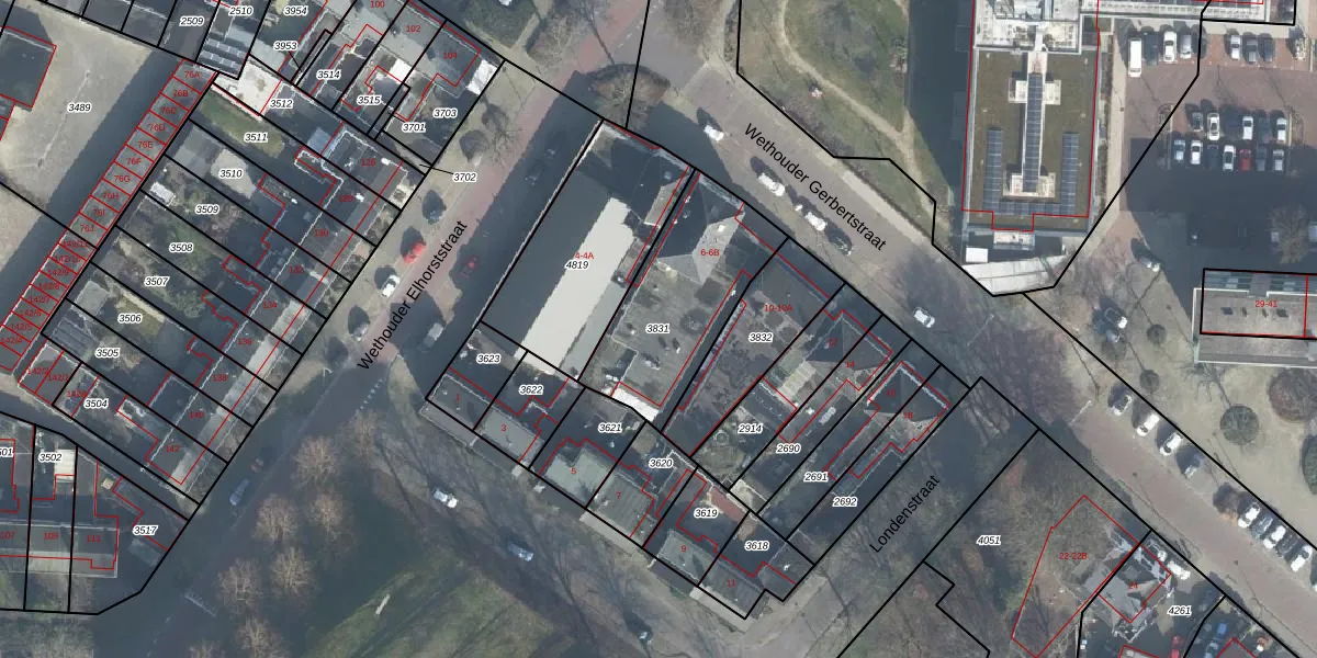 Gebruik de zoekbalk of klik op een perceel om informatie over het perceel te bekijken.
