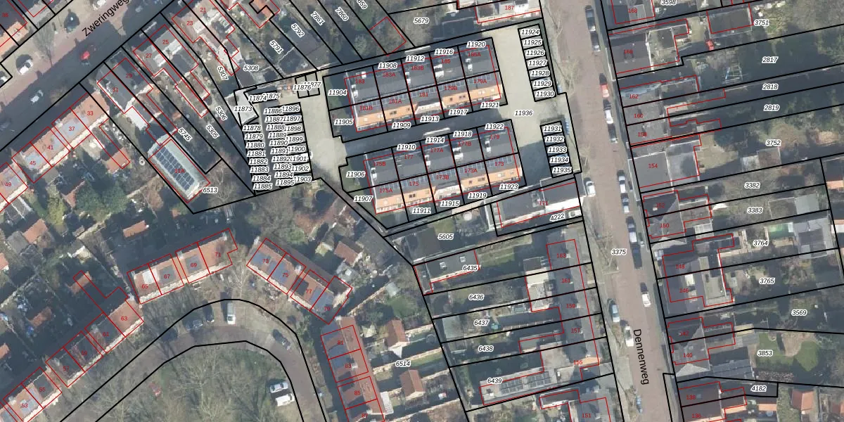 Gebruik de zoekbalk of klik op een perceel om informatie over het perceel te bekijken.