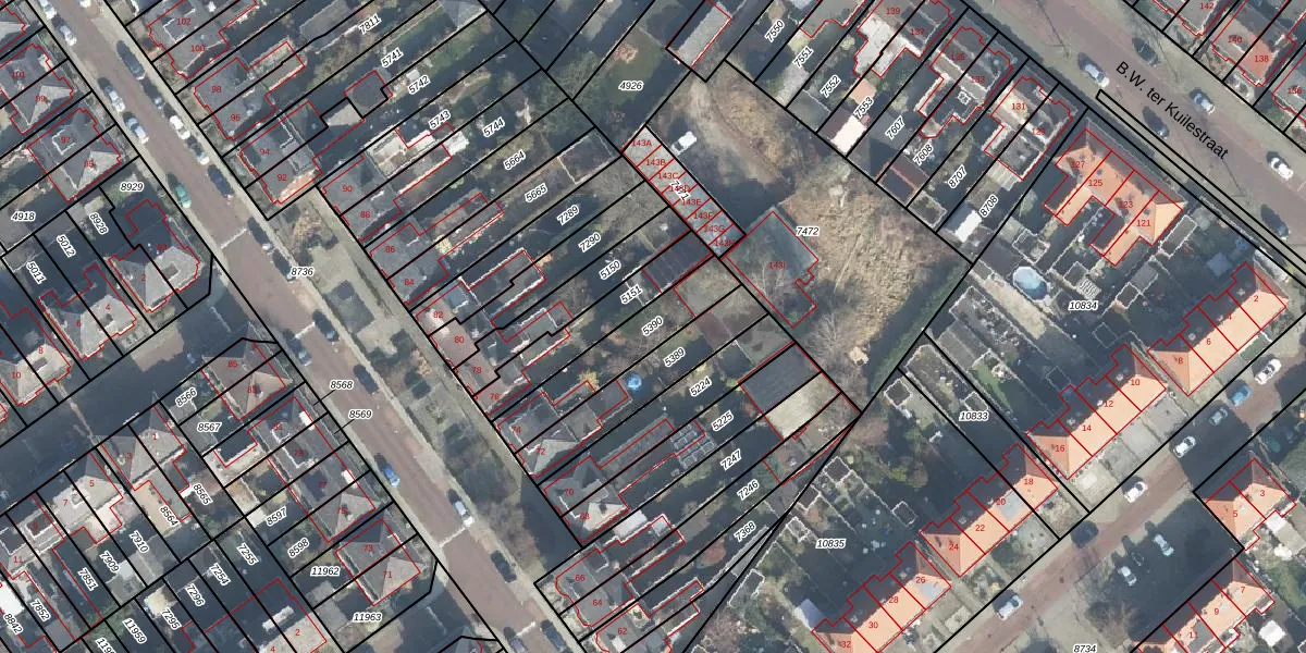 Gebruik de zoekbalk of klik op een perceel om informatie over het perceel te bekijken.