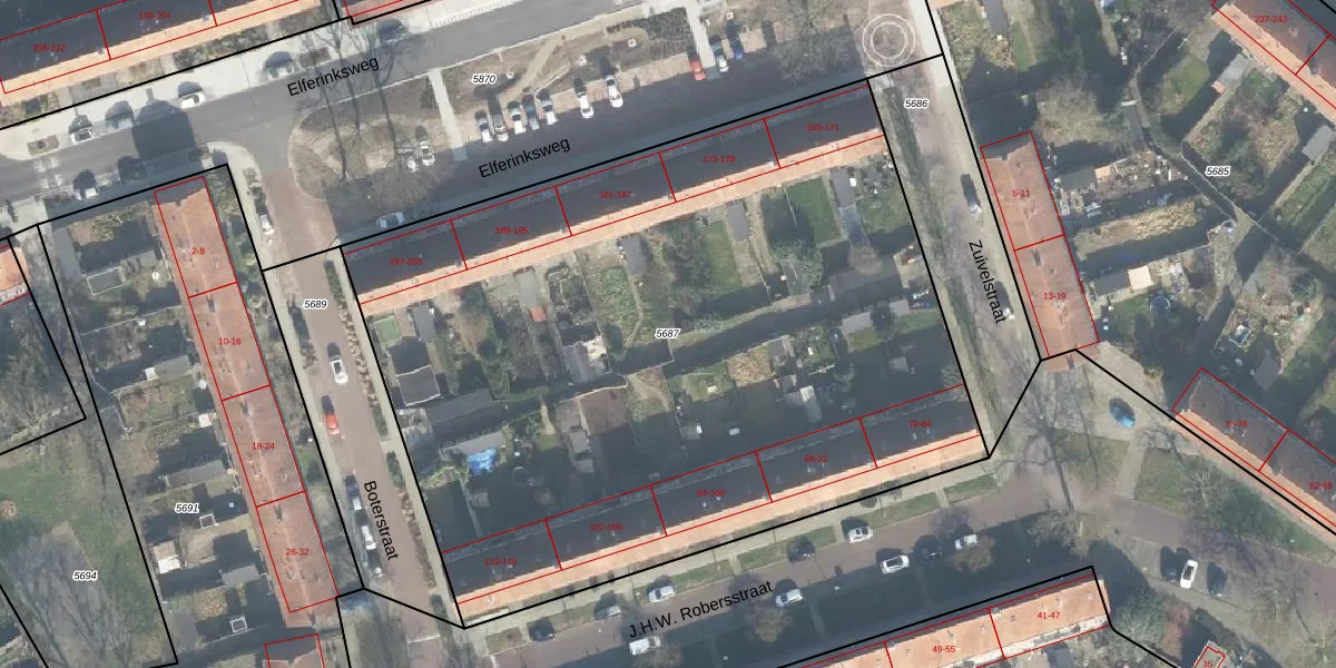 Gebruik de zoekbalk of klik op een perceel om informatie over het perceel te bekijken.
