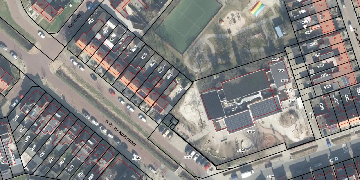 Gebruik de zoekbalk of klik op een perceel om informatie over het perceel te bekijken.