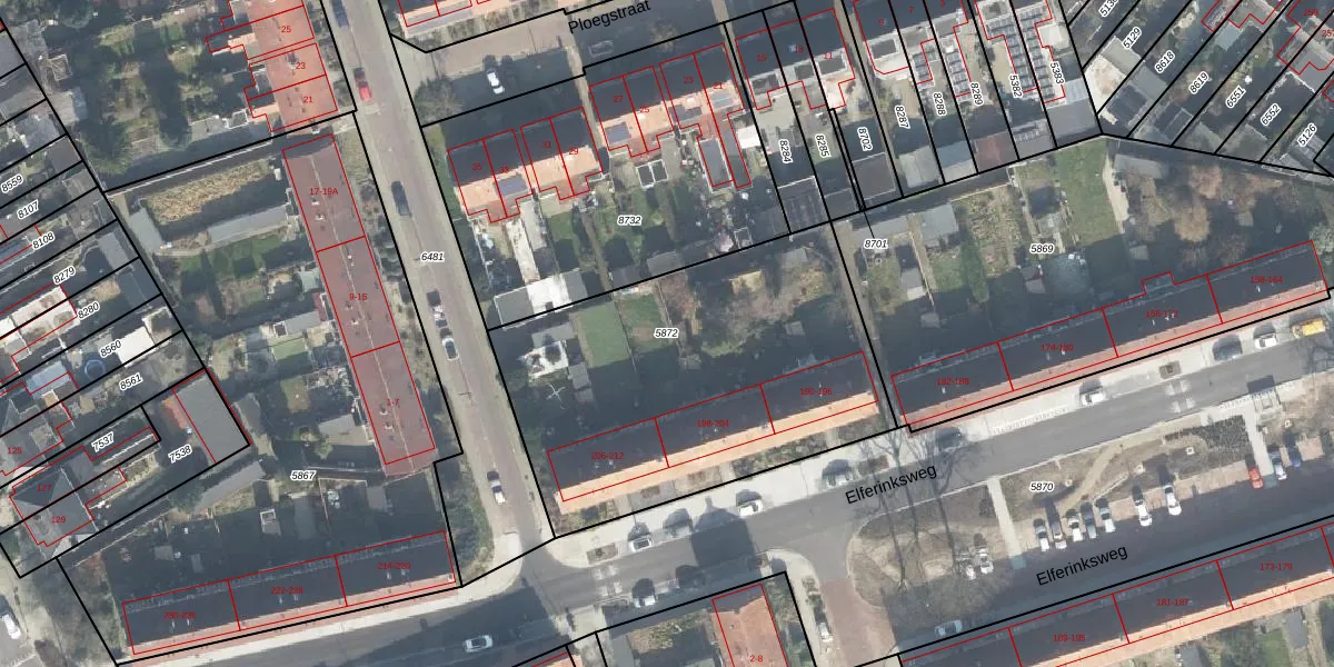 Gebruik de zoekbalk of klik op een perceel om informatie over het perceel te bekijken.