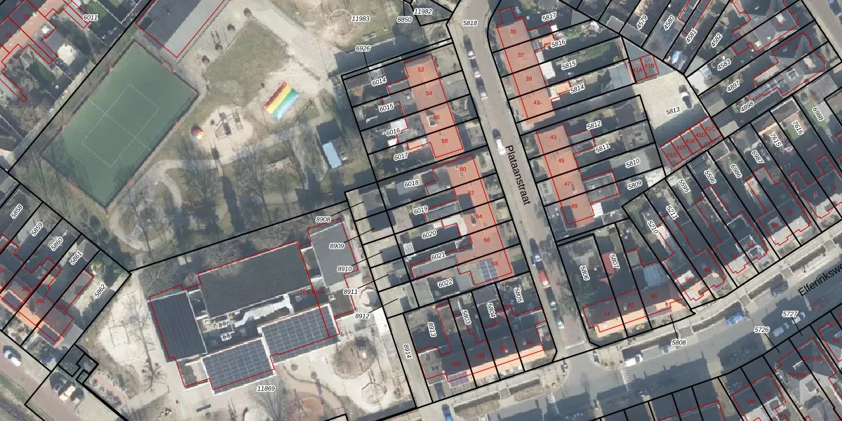 Gebruik de zoekbalk of klik op een perceel om informatie over het perceel te bekijken.