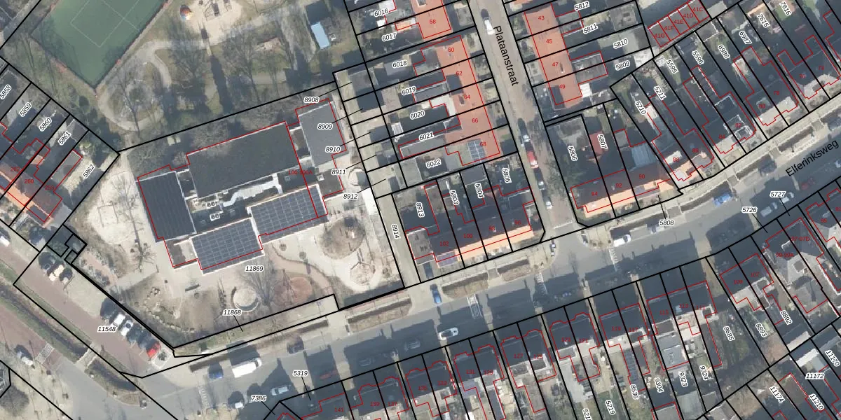 Gebruik de zoekbalk of klik op een perceel om informatie over het perceel te bekijken.