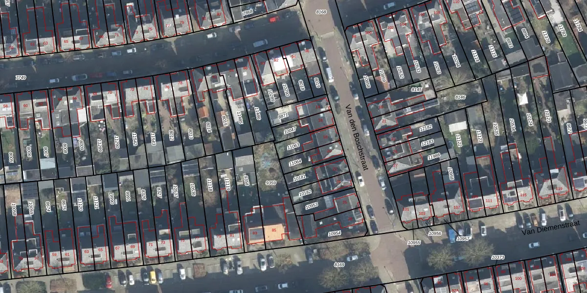 Gebruik de zoekbalk of klik op een perceel om informatie over het perceel te bekijken.
