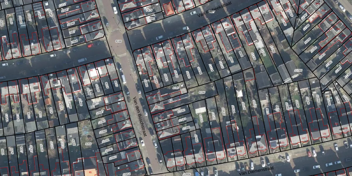 Gebruik de zoekbalk of klik op een perceel om informatie over het perceel te bekijken.