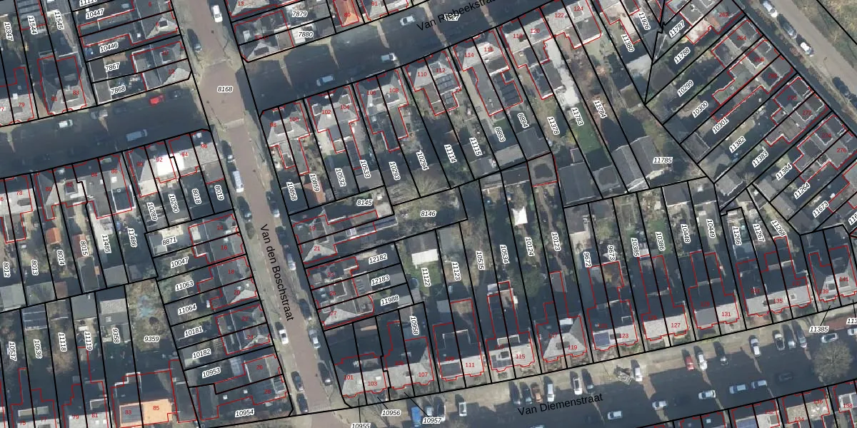 Gebruik de zoekbalk of klik op een perceel om informatie over het perceel te bekijken.