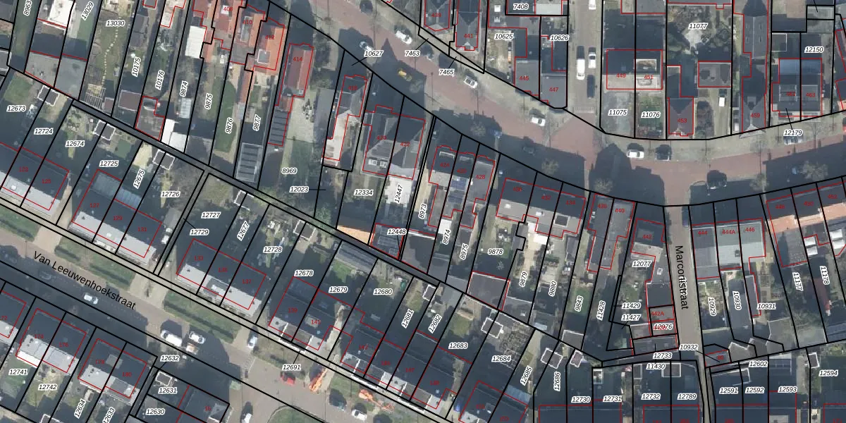 Gebruik de zoekbalk of klik op een perceel om informatie over het perceel te bekijken.