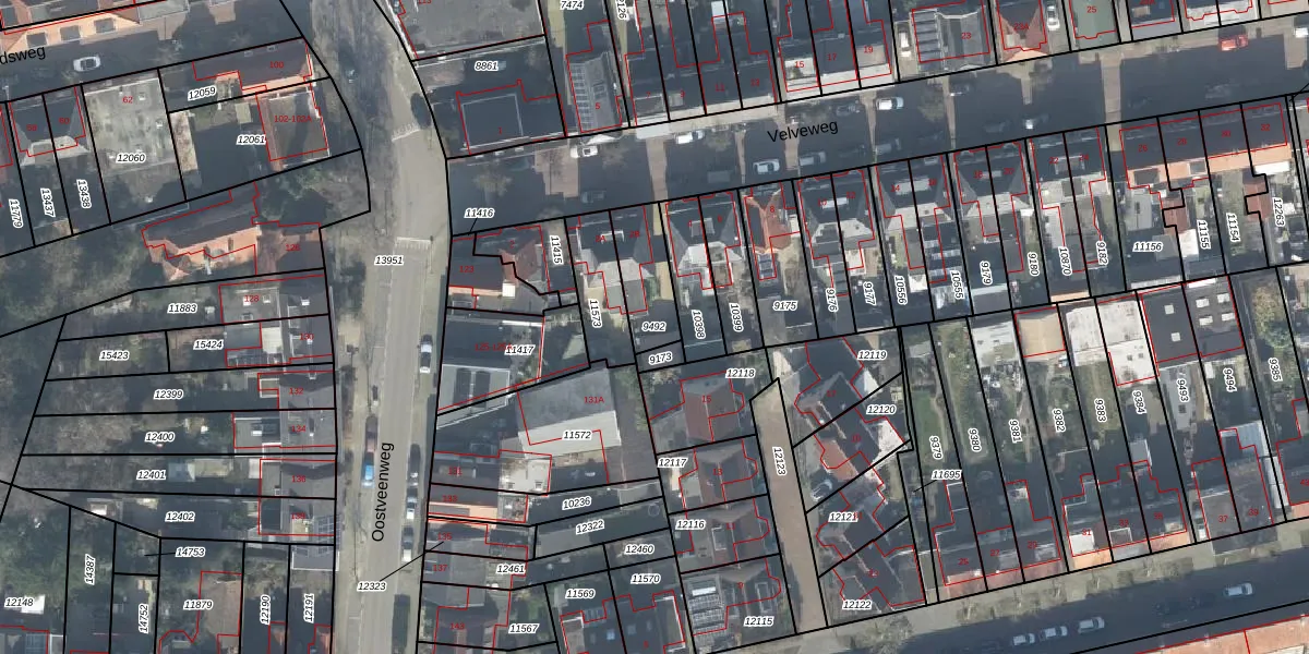 Gebruik de zoekbalk of klik op een perceel om informatie over het perceel te bekijken.