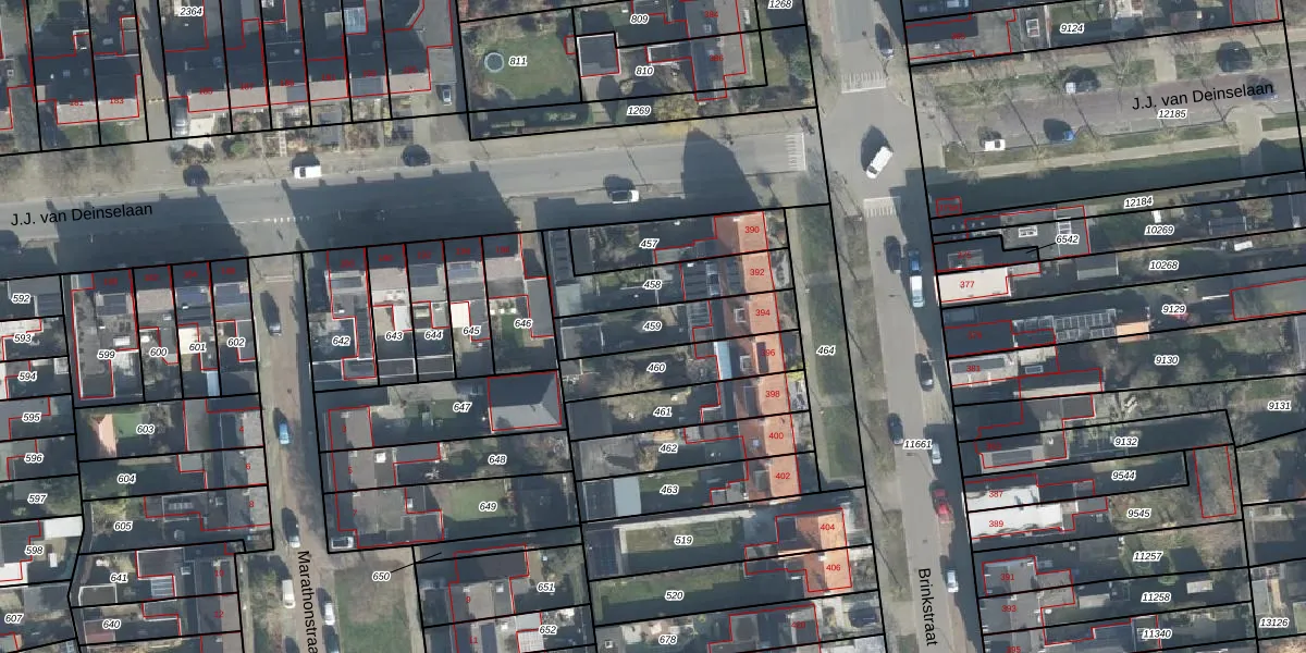 Gebruik de zoekbalk of klik op een perceel om informatie over het perceel te bekijken.
