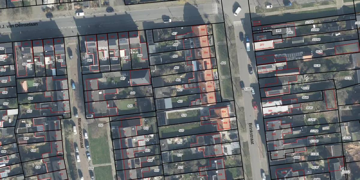 Gebruik de zoekbalk of klik op een perceel om informatie over het perceel te bekijken.