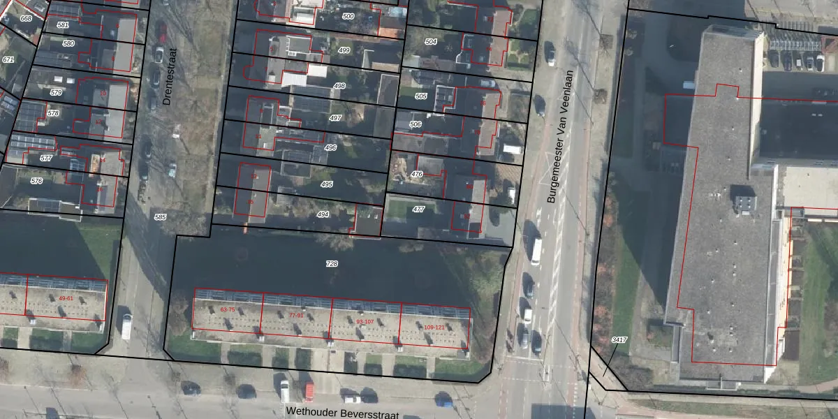 Gebruik de zoekbalk of klik op een perceel om informatie over het perceel te bekijken.
