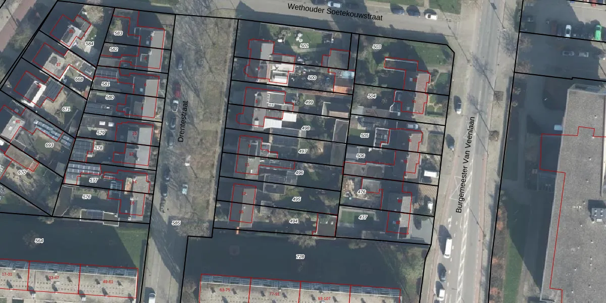 Gebruik de zoekbalk of klik op een perceel om informatie over het perceel te bekijken.