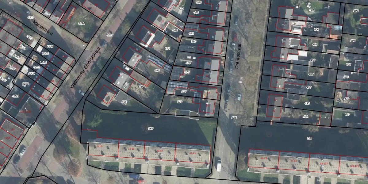Gebruik de zoekbalk of klik op een perceel om informatie over het perceel te bekijken.