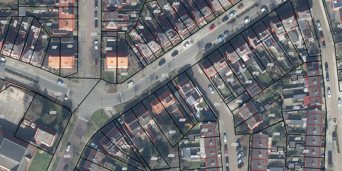 Gebruik de zoekbalk of klik op een perceel om informatie over het perceel te bekijken.