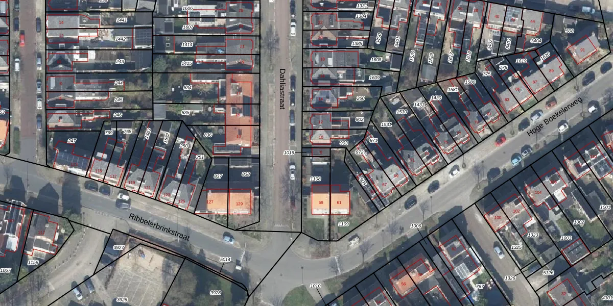 Gebruik de zoekbalk of klik op een perceel om informatie over het perceel te bekijken.