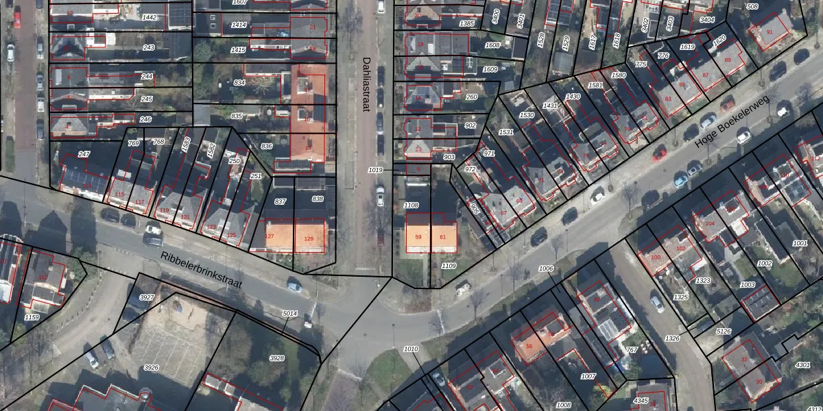 Gebruik de zoekbalk of klik op een perceel om informatie over het perceel te bekijken.