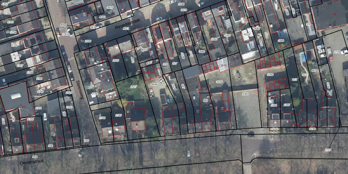Gebruik de zoekbalk of klik op een perceel om informatie over het perceel te bekijken.