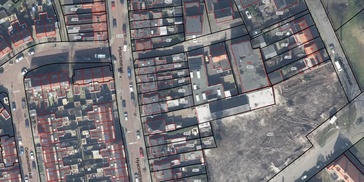 Gebruik de zoekbalk of klik op een perceel om informatie over het perceel te bekijken.