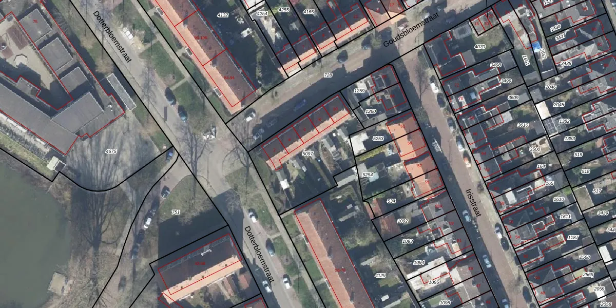 Gebruik de zoekbalk of klik op een perceel om informatie over het perceel te bekijken.