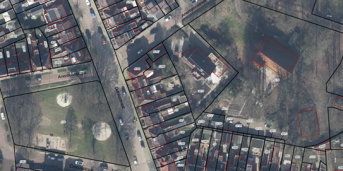 Gebruik de zoekbalk of klik op een perceel om informatie over het perceel te bekijken.