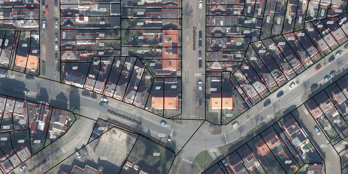 Gebruik de zoekbalk of klik op een perceel om informatie over het perceel te bekijken.
