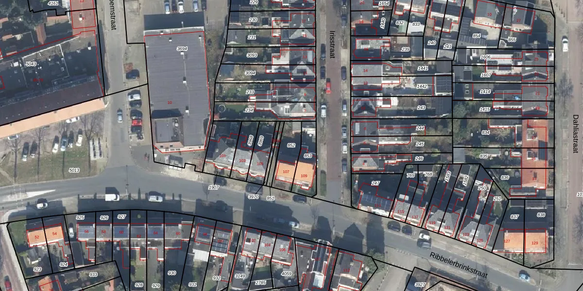 Gebruik de zoekbalk of klik op een perceel om informatie over het perceel te bekijken.
