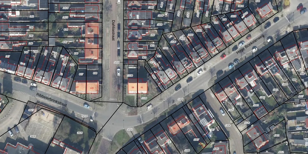 Gebruik de zoekbalk of klik op een perceel om informatie over het perceel te bekijken.